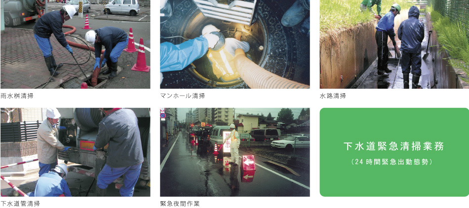 24時間緊急出動の態勢を整え、調査、清掃から災害復興支援まで